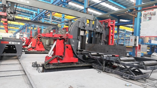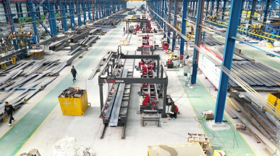 智邁德鋼結構“數字聯營示范工廠”,依托自動化、智能化鋼結構加工設備,為客戶提供集板材存儲、切割、焊接、矯正、拋丸、噴涂、廢氣處理于一體的鋼結構智慧工廠整體解決方案。整個生產流程上全套鋼結構加工設備均為智邁德專利產品,以智能化、高效率為顯著特點。其中裝配式建筑鋼梁全自動一次成型生產線,擁有專利33項,實現了控制系統、機器人、人工智能系統、焊接反應力變形等多個領域的重大突破,能夠一次完成H型建筑鋼梁腹板和翼板的自動上料、組立、焊接、翻轉、矯正等五道工序,整個鋼梁生產過程無需人工操作行車搬運。搭配智邁德“絕影”“烏騅”多絲多弧焊機,焊接速度達到傳統設備的約4倍,成為鋼結構加工行業具有劃時代意義的新方案。