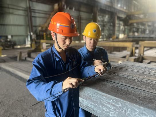 方大特鋼煉鋼廠組織人員對連鑄坯外觀質量進行檢查 謝媛 攝