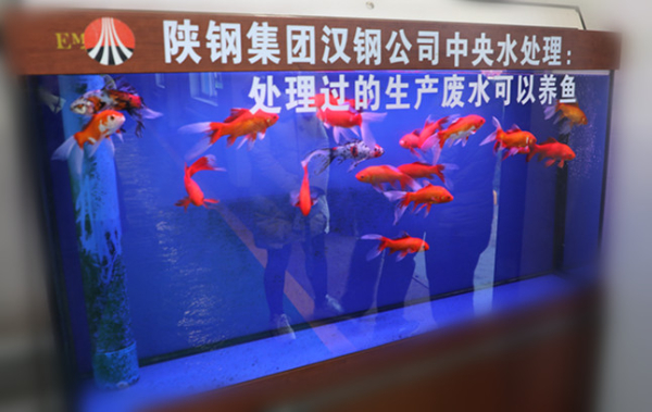 第一站來(lái)到公司中央水處理,考察組一行看了生產(chǎn)污水池后,導(dǎo)游對(duì)中央水處理系統(tǒng)進(jìn)行了講解。最后,大家目瞪口呆的停留在一缸金魚(yú)前,不禁驚嘆道“處理過(guò)的生產(chǎn)污水真的清澈見(jiàn)底,可以養(yǎng)魚(yú)吖”。