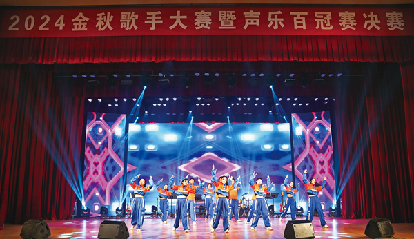 圖為2024金秋歌手大賽暨聲樂百冠賽決賽十佳歌手上臺領獎。
