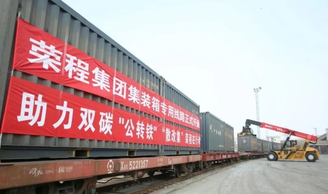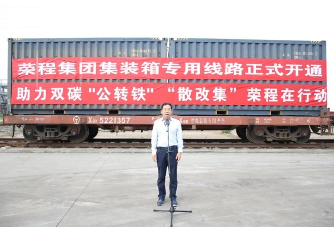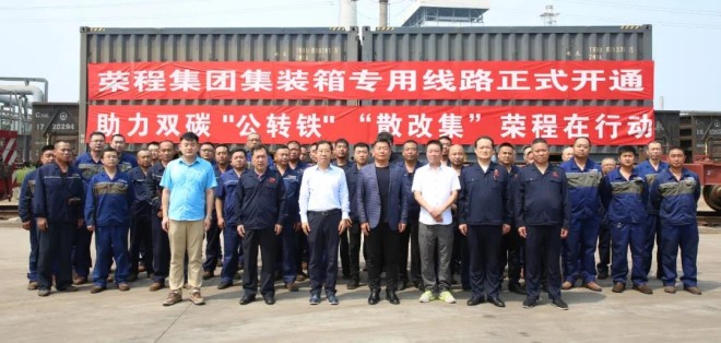 7月26日,榮程集團集裝箱鐵路專用線開通儀式在天榮公司舉行。以此為標志,榮程集團推動碳達峰助力碳中和再邁一大步。