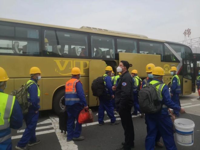 4月15日下午,冶金公司緊急從江蘇張家港、南通等區(qū)域在建項目,征調(diào)了136人組成的施工隊伍,克服了物資調(diào)配等困難,全部配備齊防疫用品、飲用水、勞保用品、施工器具等物資,安排了3臺大巴車、1輛貨車及1輛值班通勤車輛,迅速開抵上海臨港。建筑公司緊急抽調(diào)北理工項目部的第三批援建人員也按照集結(jié)命令如期抵達現(xiàn)場,各單位人員會師之后立即快速熟悉現(xiàn)場,投入現(xiàn)場施工中。