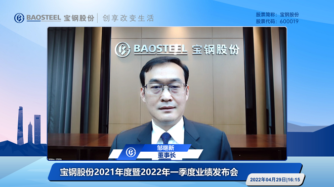 4月29日,寶鋼股份發布了2021年度暨2022年一季度業績,并在當日召開了中英雙語業績說明會。董事長鄒繼新,董事、總經理盛更紅,獨立董事陸雄文,財務總監兼董事會秘書王娟、寶鋼股份首席研究員王利出席會議。