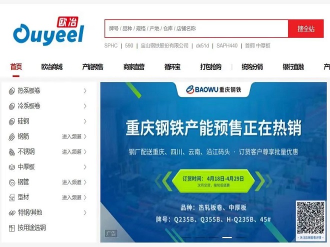 有購買意向的用戶可注冊(cè)登錄歐冶平臺(tái)(www.ouyeel.com),進(jìn)入“重慶鋼鐵歐冶商城店”進(jìn)行購買。