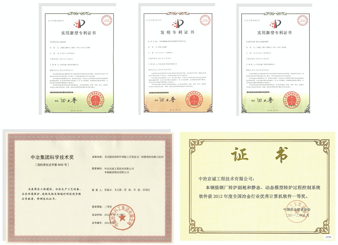 中冶京誠自主研發的基于副槍技術的轉爐智能化系統成熟、先進、可靠,累計應用自有專利5項、軟件著作權1項,具有多項創新技術,榮獲中國冶金建設協會全國冶金行業優秀計算機軟件一等獎,中冶集團科學技術獎三等獎。