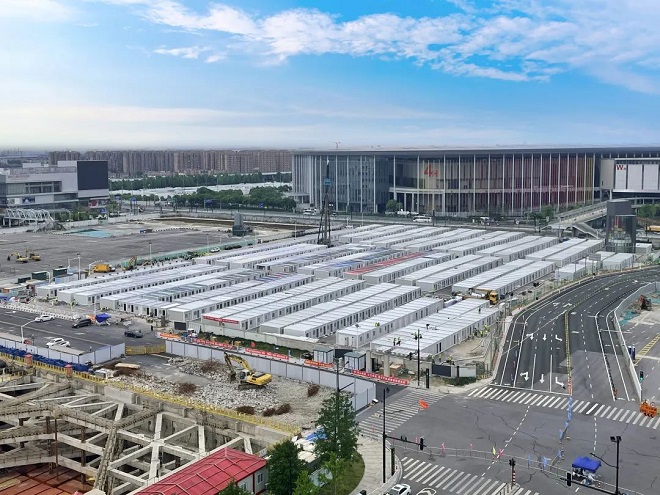 4月30日下午,中國二十二冶接到建設上海市靜安區(qū)和黃浦區(qū)兩個最大的方艙隔離點的緊急通知。該項目分別位于上海市國家會展中心P2、P15停車場內,總占地面積85000平方米,計劃新建2000余個集裝箱板房,建成后可容納約4000人。在搶建指揮中樞全盤統籌、科學部署下,中國二十二冶3000多人同時作業(yè)在施工現場,多專業(yè)有序銜接、靈活施策、交叉作業(yè),開啟建設“加速度”。目前,該項目已順利完工。