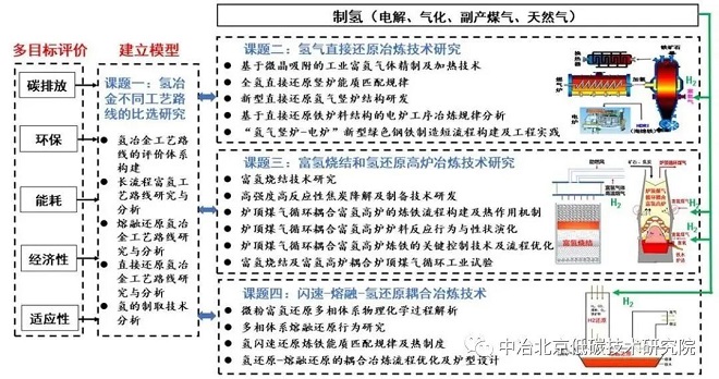 一、課題以“基礎理論—成套技術—解決方案—項目設計—工程示范”為總體思路,構建最佳綠色低碳氫冶金工藝路線,并形成以碳素流為主因素的多目標低碳工藝評價體系。