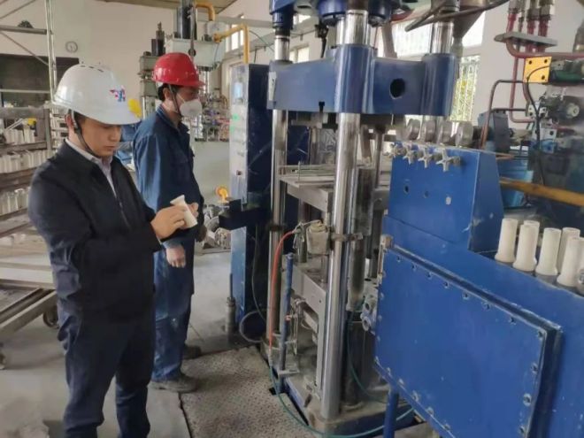 高桂航帶領(lǐng)他的企業(yè)在積極爭取外部推力的同時,想方設(shè)法增強(qiáng)內(nèi)部動力,促進(jìn)科技成果轉(zhuǎn)化,提升創(chuàng)新能力。他組建了一支由材料學(xué)專業(yè)的博士、碩士及高級工程師組成的專業(yè)核心研發(fā)團(tuán)隊。他身先士卒,深入鋼廠中間包現(xiàn)場,與技術(shù)工人交流,了解實際情況,掌握一手資料;他和他的團(tuán)隊成員一起,根據(jù)出鋼溫度、冶煉鋼種、鋼水成分、連鑄機(jī)拉速、連鑄坯坯型、渣系成份等技術(shù)信息,對氧化鋯鋯芯成份配制、成型技術(shù)、燒成溫度曲線做個性化研究,并制造出適應(yīng)煉鋼—連鑄實際需求的控流產(chǎn)品;根據(jù)中間包不同的包型設(shè)計對應(yīng)的綜合砌筑方案,對中間包紊流器的痛點做針對性研究開發(fā),提高紊流器的抗沖刷、耐侵蝕性能;根據(jù)出鋼溫度、冶煉鋼種、鋼水成份、渣系成份等技術(shù)信息,研究干式料成份配制,使得干式料渣線部位耐火材料的抗渣侵蝕性能滿足中間包長時間連續(xù)澆鑄的要求。