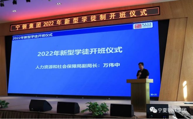 7月4日上午,寧夏鋼鐵(集團)有限責任公司與中衛市職業技術學校校企合作新型學徒制培訓班開班儀式在公司多功能廳舉行。中衛市人力資源和社會保障局副局長萬偉中、市職業技術學校校長趙炳東、市職業技術學校副校長吳文銘、市人力資源和社會保障局就業促進科科長白玉潔、市職業技術學校實訓基地管理中心主任王文才、寧鋼公司副總經理周正貴、副總經理朱淑英、人力資源部部長俞磊等領導參加活動。