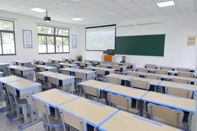 托管中心教室配套護眼燈、高清投影燈系統(陳明 攝)