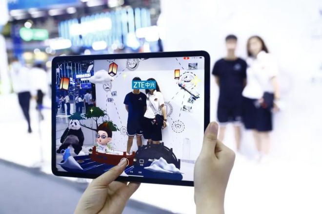 在現(xiàn)場(chǎng),中興通訊還展出了精彩的互動(dòng)體驗(yàn)項(xiàng)目——中興開物AR樂園,通過空間計(jì)算、實(shí)時(shí)云渲染技術(shù),構(gòu)建一個(gè)數(shù)字世界空間,人物透過終端設(shè)備可以在空間里和虛擬模型形成虛實(shí)融合效果,幫助客戶實(shí)現(xiàn)行業(yè)數(shù)字化虛實(shí)融合的DIY構(gòu)建,豐富文旅文博工業(yè)、能源等行業(yè)信息升維,沉浸式交互,助力數(shù)字化轉(zhuǎn)型。
