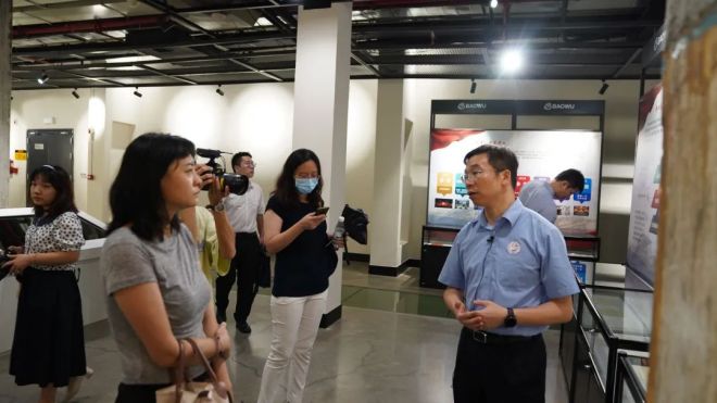 記者們參觀韶鋼智慧中心一樓展廳