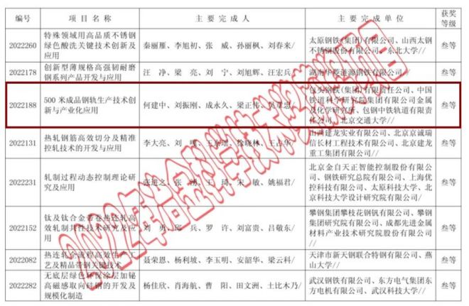 “500米成品鋼軌生產技術創(chuàng)新與產業(yè)化應用”項目榮獲三等獎