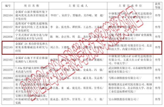 “金屬礦24米臺階穿孔和大密集系數(shù)爆破技術研究與應用”項目榮獲三等獎
