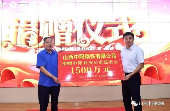 追加捐款500萬元!中陽鋼鐵全力支持中陽縣災后重建