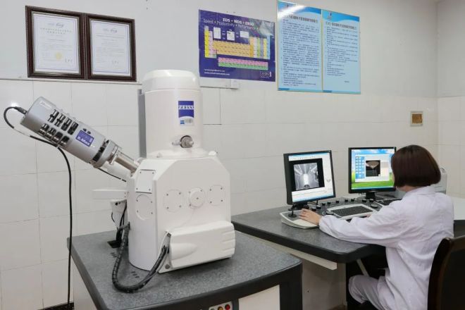 技術人員在用蔡司電鏡對缺陷形貌、組元進行觀察分析