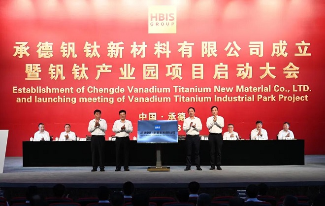 8月18日,承德釩鈦新材料有限公司(以下簡稱承德釩鈦)成立暨釩鈦產(chǎn)業(yè)園項目啟動大會在承德召開。這是河鋼認真貫徹習近平總書記視察承德重要講話精神、奮力開創(chuàng)高質(zhì)量發(fā)展新局面的深入實踐,堅定落實省委十屆二次全會精神、積極推動我省從原材料大省向新材料強省轉(zhuǎn)變的具體行動,對推進我國乃至世界釩鈦產(chǎn)業(yè)高質(zhì)量發(fā)展具有十分重要的意義。河鋼集團黨委書記、董事長于勇,承德市委書記柴寶良分別致辭,并共同為承德釩鈦揭牌。河鋼集團總經(jīng)理王蘭玉、承德市長王亞軍出席儀式并一同揭牌。
