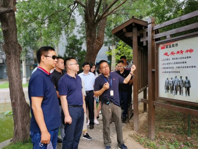威猛股份總經理王思民(前排右1)陪同來賓視察企業