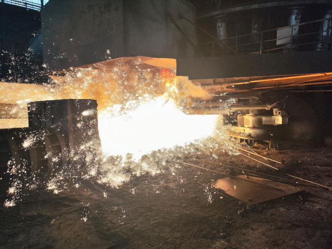 寶武集團(tuán)重慶鋼鐵1號高爐鐵口開啟中(何宗綠/攝)
