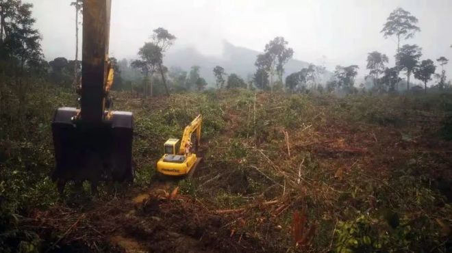 這里地處酷熱多雨的赤道,山丘起伏,溝壑縱橫,大部分為熱帶雨林的原始地貌,植被茂密,藤蔓叢生,要建工廠,首先就要“清表”,即清理掉地表植被。李建告訴記者,僅僅這一項任務,就耗費了足足兩個月時間。他們組織了當地的十幾位挖掘機手,向雨林進軍,這是一次艱苦的“征程”。