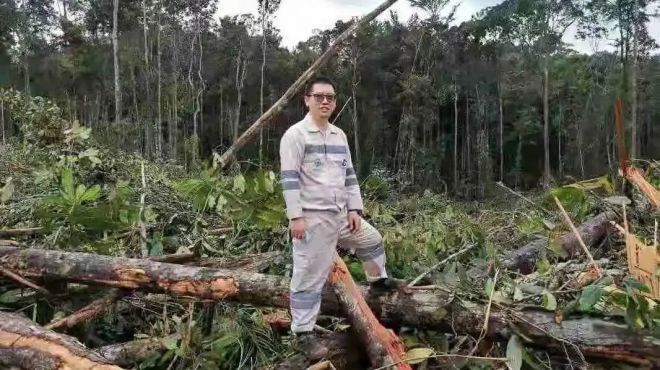 當地全年雨季有8個月,幾乎天天下雨,每天下三四場。一陣急雨過后,太陽出來,直射十幾分鐘,如果躲避不及時就可能中暑。雨林里沒有路,人根本無法進入,如果冒險進入,很可能就出不來了,李建第一次去現場,就是坐在履帶式挖掘機的機蓋上才得以進去。