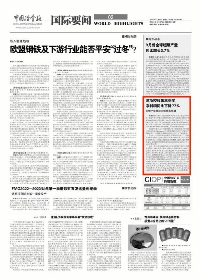 浦項(xiàng)控股表示,這一季度利潤下降主要原因是,9月初該公司受欣納諾(Hinnamnor)臺(tái)風(fēng)影響,旗下浦項(xiàng)工廠多條生產(chǎn)線被迫停產(chǎn),全球鋼材價(jià)格持續(xù)下跌也對(duì)其產(chǎn)生了部分影響。