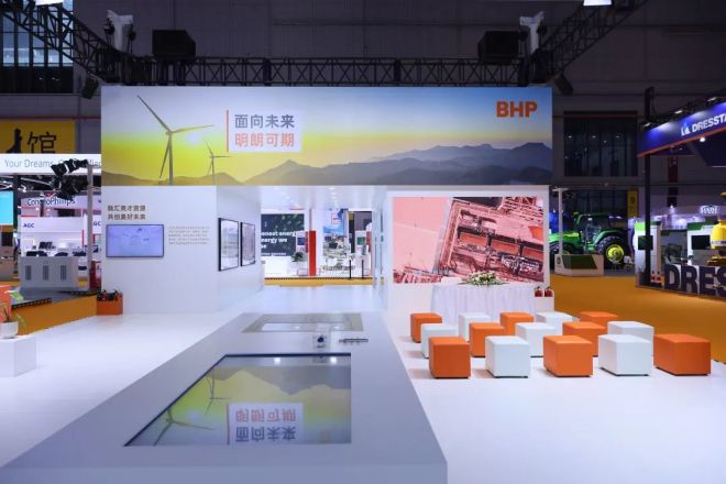 2022年11月5日,必和必拓連續(xù)五年亮相中國(guó)國(guó)際進(jìn)口博覽會(huì)(以下簡(jiǎn)稱進(jìn)博會(huì))。今年,必和必拓更是首次作為參展企業(yè)參加進(jìn)博會(huì)企業(yè)商業(yè)展,全面展示其作為全球知名的綜合性資源公司積極融入中國(guó)新發(fā)展格局的決心。必和必拓的兩百平方米特裝展臺(tái)以“面向未來(lái),明朗可期”為主題,通過(guò)多媒體科技交互體驗(yàn)、多屏聯(lián)動(dòng)等方式,展示公司近年來(lái)在脫碳減排領(lǐng)域的目標(biāo)、承諾和成果,以及與中國(guó)業(yè)務(wù)伙伴在低碳綠色發(fā)展領(lǐng)域的合作。