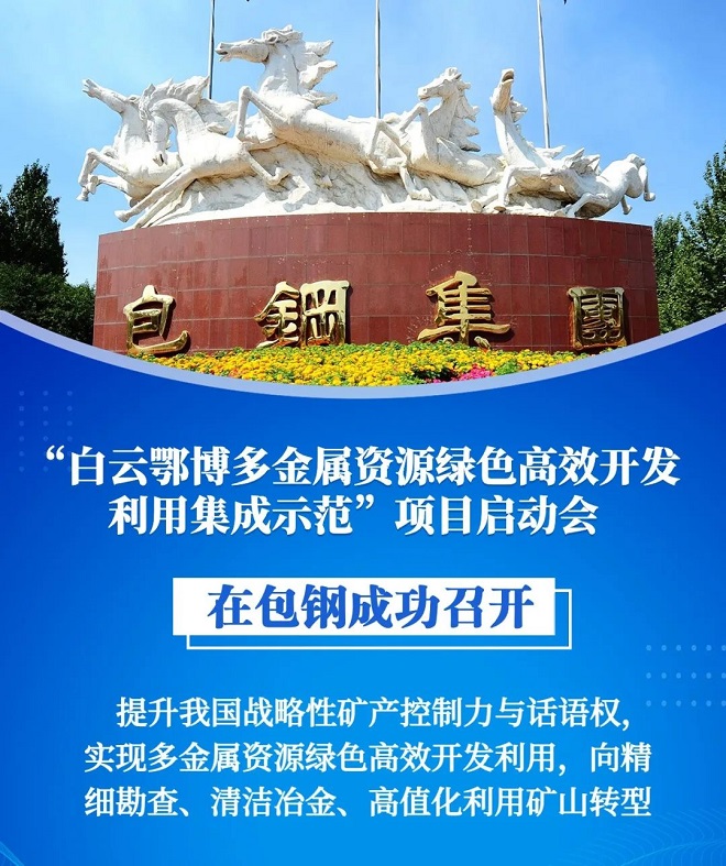 包鋼白云鄂博超大型多金屬礦床是世界罕見戰略資源寶庫,其稀土儲量全球第一,鈮、螢石等資源量均居中國之首,在全球戰略性礦產資源格局中不可或缺。歷經七十載科技攻關,白云鄂博礦復雜共生鐵、稀土選冶世界級難題獲得突破性進展,取得了舉世矚目的成就。包鋼人勵精圖治、勇攀高峰,將更高目標瞄準巨量螢石、鈮等資源產業化,以及實現稀土冶煉低能耗等領域,在堅定不移以生態優先、綠色發展為導向的高質量發展新征程上,包鋼全力奔赴“雙碳”目標,致力綠色高效發展,白云鄂博多金屬資源綠色高效開發利用集成示范項目應運而生。該項目擬開展地質-采礦-選礦-冶金全鏈條一體化聯合攻關,著力解決一系列科學技術難題,形成地質-選礦-冶金-環境相結合的白云鄂博多金屬資源綠色高效開發利用解決方案,實現鐵、稀土、螢石選礦和稀土冶煉工藝技術升級及選鈮技術突破,引導礦山向資源精細勘查、清潔冶金、高值化利用方向轉型,助力白云鄂博多金屬資源綠色高效開發利用目標得以實現。