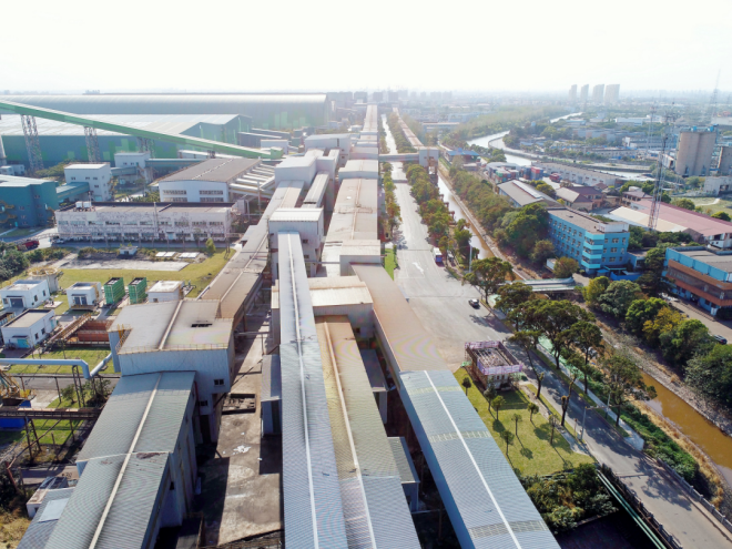 寶鋼股份寶山基地原料輸入系統超低排改造后航拍圖