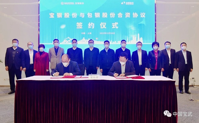12月16日上午,寶鋼股份與包鋼股份在寶鋼股份技術中心簽署合資協議,雙方將共同出資成立鋼管平臺公司。此舉旨在提升鋼管產業集中度與競爭優勢,探索鋼管產業運營新模式。寶武黨委常委,寶鋼股份黨委書記、董事長鄒繼新,包鋼集團黨委書記、董事長魏栓師出席簽約儀式。