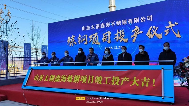 12月23日,太鋼鑫海不銹鋼煉鋼項(xiàng)目正式竣工投產(chǎn),這是太鋼集團(tuán)向中國(guó)寶武“公司日”獻(xiàn)上的一份厚禮。該項(xiàng)目的建成投產(chǎn),標(biāo)志著太鋼在建設(shè)全球最具競(jìng)爭(zhēng)力的不銹鋼全產(chǎn)業(yè)鏈高科技企業(yè)的新征程上又邁出了重要一步。中國(guó)寶武總經(jīng)理、黨委副書(shū)記胡望明通過(guò)視頻連線的方式出席竣工儀式并宣布項(xiàng)目投產(chǎn)。臨沂市副市長(zhǎng)薛超文,臨沂市工信局、莒南縣委、鑫海科技、太鋼鑫海領(lǐng)導(dǎo)及職工代表60余人出席現(xiàn)場(chǎng)儀式。