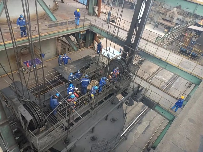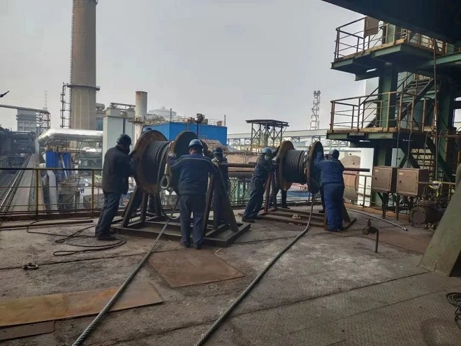 春節(jié)期間,中國(guó)五冶集團(tuán)唐山西山焦化作業(yè)部1#干熄焦焦罐提升機(jī)鋼絲繩出現(xiàn)斷絲現(xiàn)象,經(jīng)焦化部領(lǐng)導(dǎo)研究決定安排16小時(shí)對(duì)提升機(jī)鋼絲繩進(jìn)行更換檢修,來(lái)消除生產(chǎn)隱患。