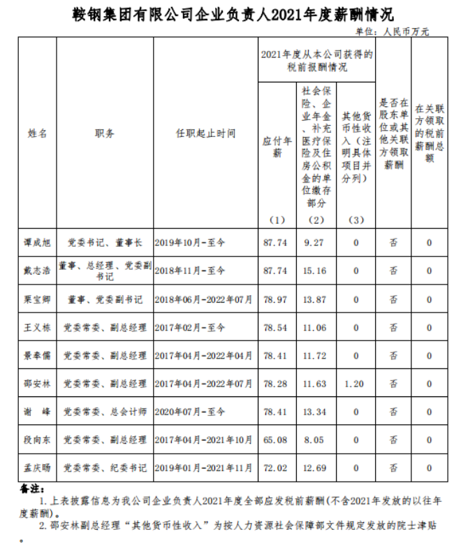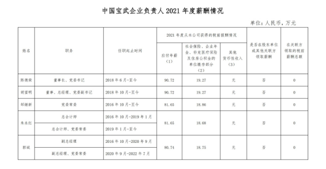 寶武、鞍鋼等央企負責人2021年度薪酬披露