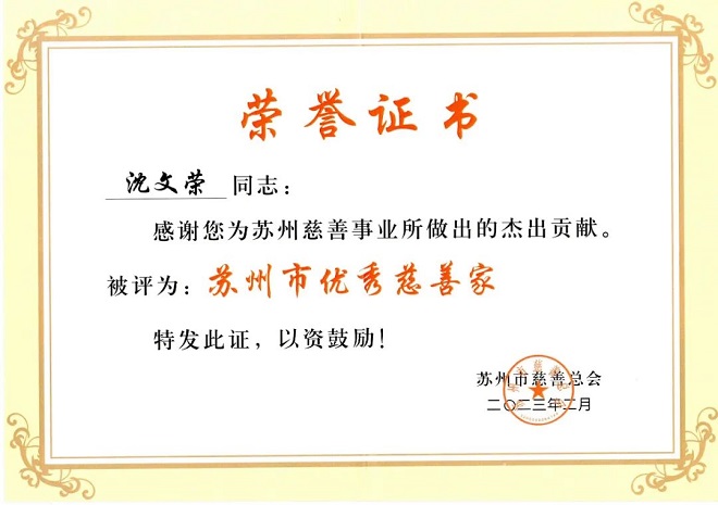 晚會對慈善先進個人和集體進行了表彰。曹路寶、蔣宏坤、吳慶文、朱民、黃愛軍分別為獲獎代表頒獎。沙鋼集團董事局主席沈文榮榮膺“蘇州市優秀慈善家”。活動現場,沙鋼還捐贈愛心善款300萬元。
