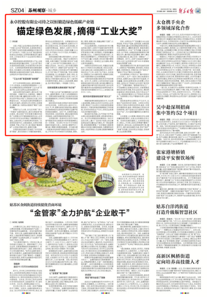 鋼鐵制造是永卓控股的核心產業,也是推進綠色轉型的重點領域,“工業大獎”是對永卓控股綠色發展工作成效的極大肯定和認可。永卓控股積極探索綠色低碳發展新路徑,加快建成從供應鏈端、制造鏈端到消費鏈端的全鏈條綠色低碳產業鏈,激發出企業轉型和鄉村振興的強大活力。