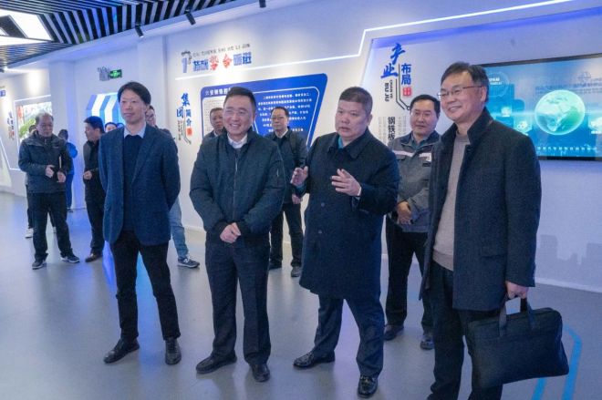 期間,王鐵成一行在智能管控中心聽取了項目電子沙盤講解,參觀了生產調度指揮中心、環保管控平臺、智慧展廳以及“紅色熔爐”愛國主義教育基地,詳細了解了企業生產建設、項目規劃、發展歷程及黨建文化建設等內容。