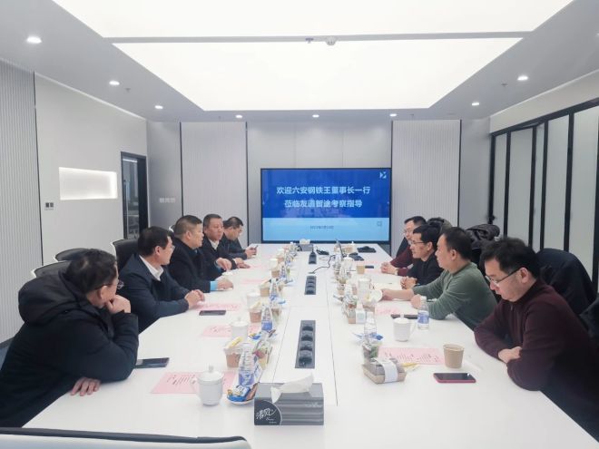2月24日,六安鋼鐵控股集團黨委書記、董事長王建兵率隊前往友道智途參觀考察,公司副總裁、項目總指揮李偉及采購中心、國貿公司、物流公司負責人陪同,友道智途CEO王瑞,副總經理楊磊,鯤鵬產品線總經理李忠欣,市場策略與解決方案總監蔡文山等領導熱情接待。