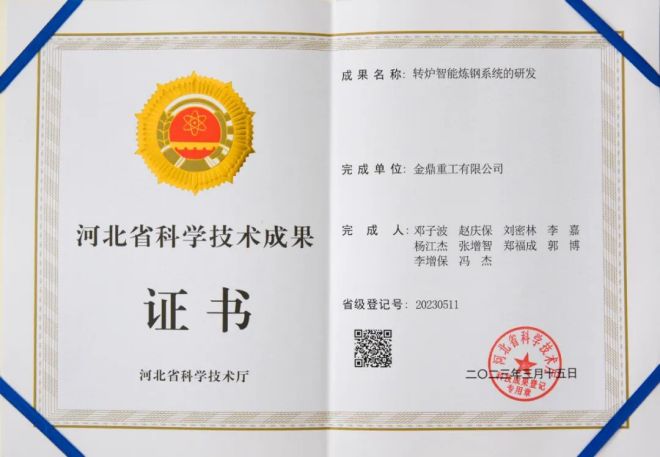 金鼎始終秉持高質量發展之路,致力于自動化、信息化、智能化轉型,近日,公司自主完成的“軋鋼廠高線加熱爐智能化燃燒技術”和“轉爐智能煉鋼系統”順利通過河北省科技成果評價,并取得證書。
