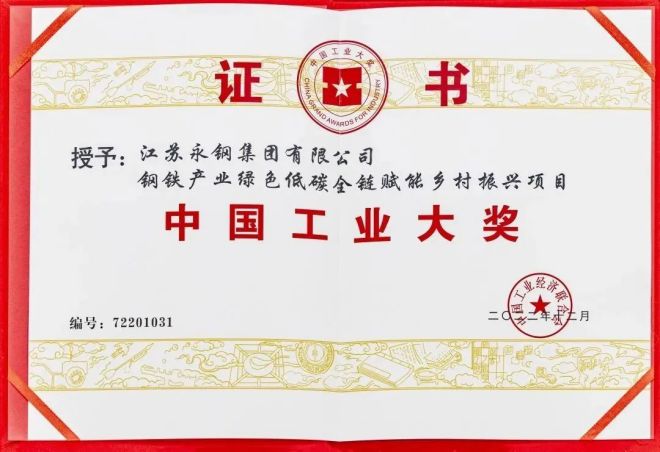 3月19日,第七屆中國工業大獎發布會在北京隆重舉行,永鋼以“鋼鐵產業綠色低碳全鏈賦能鄉村振興項目”榮膺中國工業大獎。永鋼集團總裁吳毅出席發布會代表企業領獎,并作為獲獎代表作交流分享。