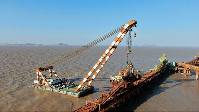 寶鋼馬跡山港位于浙江舟山馬跡山島,是亞洲第一礦石中轉深水港,是長三角地區大型鋼鐵企業原料供應的重要樞紐。中冶寶鋼發揮專業化冶金運營服務優勢,承擔著寶鋼馬跡山港設備檢修、生產協力、工程機械管用養修、建筑維修、后勤保障、專項點檢、發電機組能源輔助維護等業務。該項目涉及寶鋼馬跡山港一期裝船機。該機械已服役22年,是散料碼頭裝船作業的主力機械。為確保裝船作業安全、設備穩定,避免鋼結構疲勞、腐蝕產生較大安全隱患,中冶寶鋼對服役多年的裝船機進行拆除更新,有效保障馬跡山港的穩定運行,為長三角地區鋼鐵企業生產穩定保駕護航。