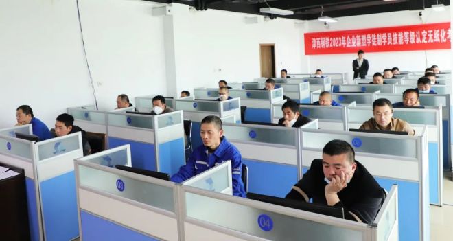 認定考試工作在津西股份老辦公樓網絡培訓教室、生產現場和遷西縣職校展開。考試現場緊張有序,組織嚴密,全程進行錄像,監督考場紀律。考生們全神貫注,奮力拼搏。這既是一次技能提升考試,更是一場崗位練兵。