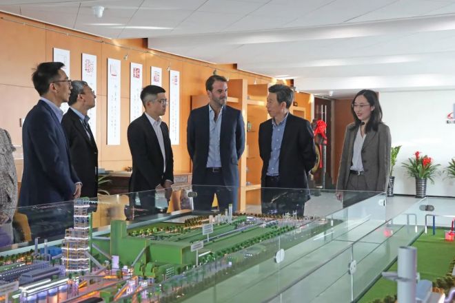 會(huì)談前,劉安棟陪同安拓一行參觀了集團(tuán)展廳。