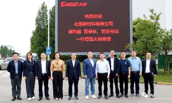5月11日, 廣西北港新材料有限公司黨委書記、董事長潘料庭,副總經(jīng)理、董事秘書陳海連,總會計師尹國安、銷售部副部長劉開陽、黨群工作部副部長石方雪、黨委辦公室科長黃茂琨、技術中心副科長李炳基、無錫辦事處主任謝新一行到訪大明集團。