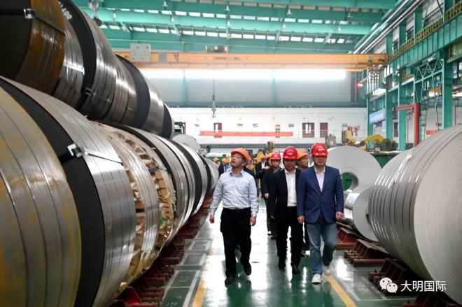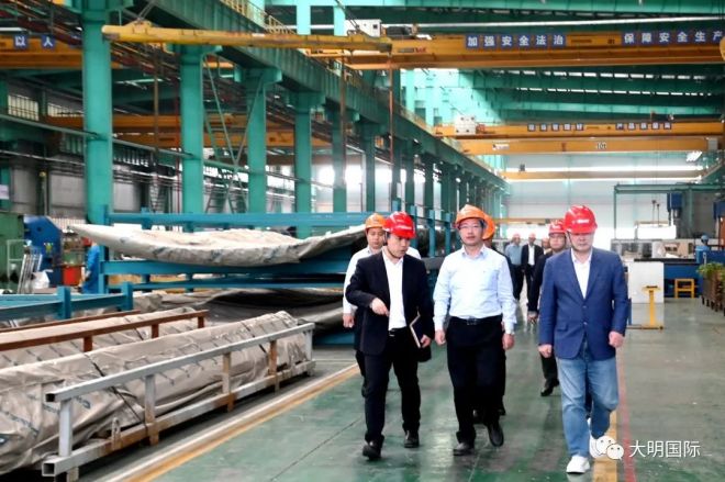 大明國際董事會主席周克明、常務副總裁錢立、副總裁張鋒、靖江加工中心總經(jīng)理蔣隨強、集團不銹鋼事業(yè)部副總經(jīng)理朱海斌、靖江加工中心副總經(jīng)理袁康、集團供應部部長助理朱文嘉等熱情接待,并陪同參觀交流。