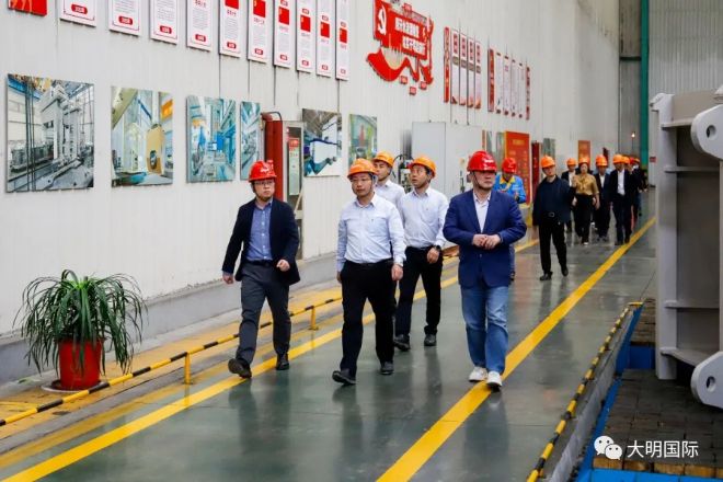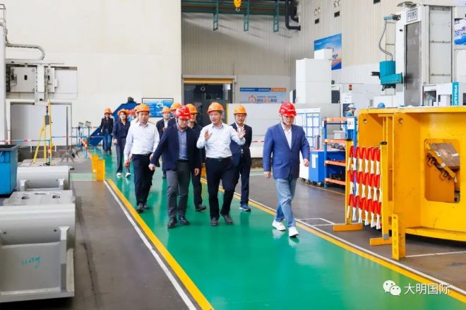潘料庭董事長一行首先參觀了大明重工集團、靖江加工中心生產(chǎn)車間及物流碼頭,對大明的材料加工制造服務優(yōu)勢和碼頭投產(chǎn)前景表示贊許。