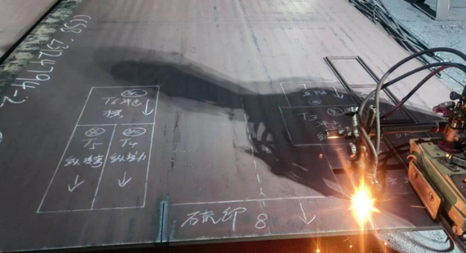船板CCSB、AH36從冶煉到軋制一氣呵成,質(zhì)檢人員第一時(shí)間檢驗(yàn)鋼板并標(biāo)注試樣取樣位置,快速完成船板取樣、加工過程,將試樣羅列在試樣架上,李建老師對(duì)試樣進(jìn)行測量查看后,在實(shí)驗(yàn)室觀測所有試驗(yàn)過程,對(duì)金鼎鋼鐵集團(tuán)有限公司船板產(chǎn)品的生產(chǎn)能力、資質(zhì)及人員專業(yè)程度表示肯定和認(rèn)可。