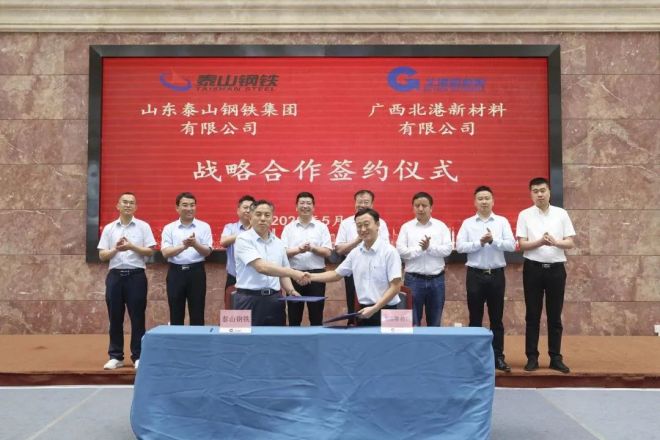 5月24日,北港新材料與山東泰山鋼鐵集團在北港永不銹書院成功簽訂戰略合作協議。此次與泰山鋼鐵的戰略合作,將為北港新材料提質增效、加快轉型升級注入新的力量。