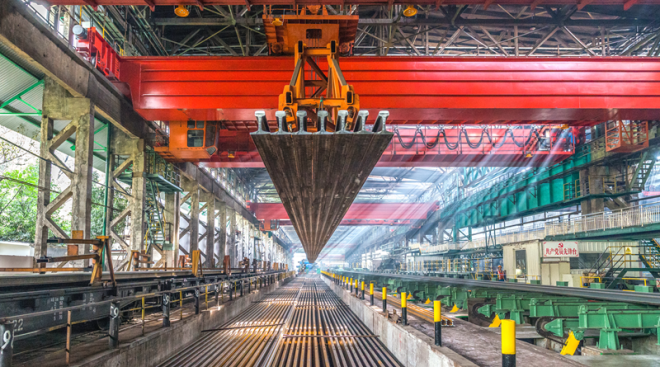 圖為鞍鋼集團攀鋼軌梁廠百米重軌裝車待發。鞍鋼集團供圖