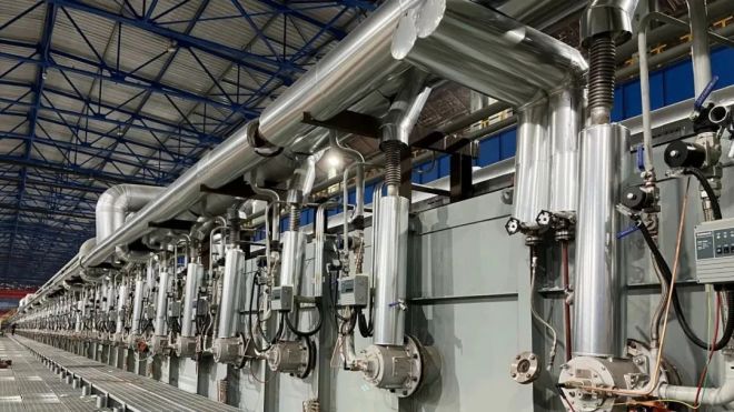 綠色低碳技術(shù)——熱處理爐配置梯級(jí)余熱利用系統(tǒng),利用煙氣余熱加熱助燃空氣、氮?dú)狻⒏稍镲L(fēng);使用超低NOx自身預(yù)熱式燒嘴,配合智能化控制系統(tǒng),實(shí)現(xiàn)熱效率最大化,NOx排放可低至150mg/m3。