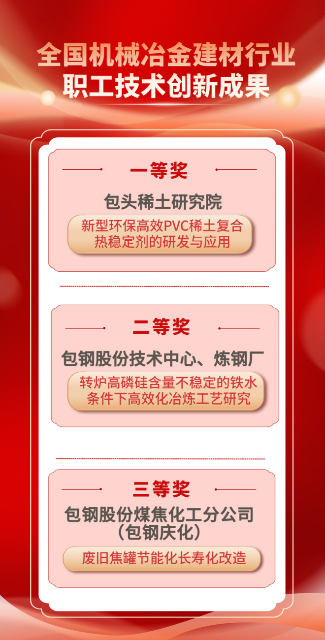 日前,2023年全國機械冶金建材行業(yè)職工技術(shù)創(chuàng)新成果、全國機械冶金建材行業(yè)示范性創(chuàng)新工作室、全國機械冶金建材行業(yè)工匠評選結(jié)果揭曉。包鋼集團獲得多項榮譽。